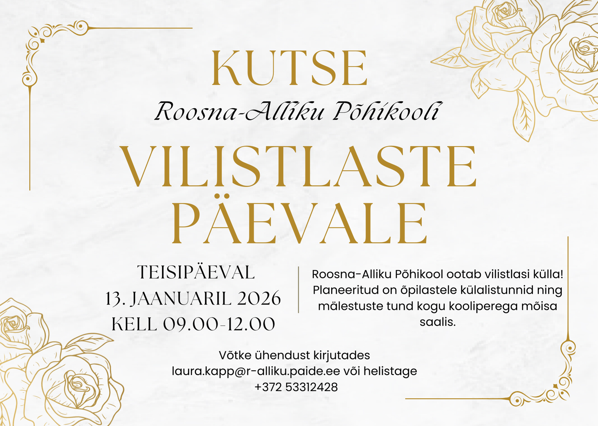 Kui soovid külla tulla ja kooli sünnipäeva nädalal kaasa lüüa, palume anda endast teada hiljemalt 5. jaanuariks 2026.