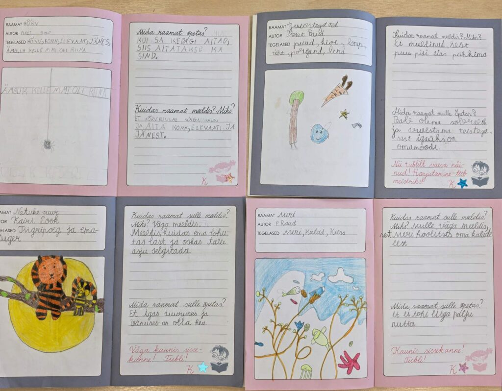 Täna käisid 1. klassi õpilased järjekordses raamatukogutunnis, kus loeti, räägiti või jutustati kolme eesti lastekirjaniku raamatututest. Aprillikuu jooksul lugesid kõik väikesed lugejad omal valikul läbi raamatuid kolme autori loomingust. Loetud raamatute kohta tehti sissekandeid oma lugemispäevikutes. Ühiselt jõuti arvamusele, et Piret Raud, Kairi Look ja Andrus Kivirähk on autorid, kelle raamatud on naljakad, õpetlikud, fantaasiat arendavad, täis emotsioone ja ülatuslikke keerdkäike. Tund kujunes muljeterohkelt lõbusaks ja meeldejäävaks.
